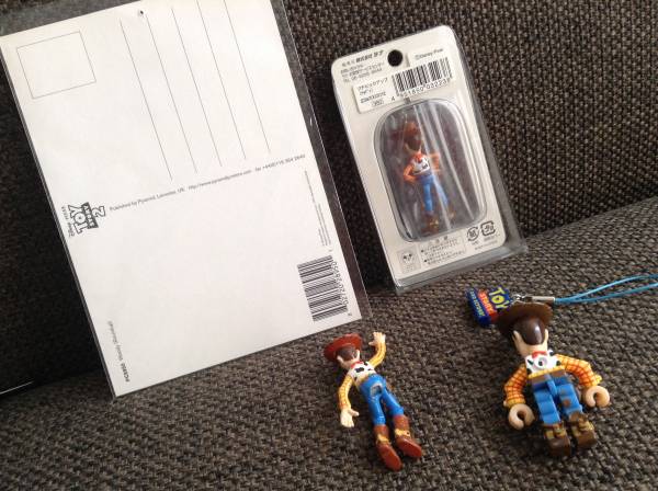 トイストーリーのウッディ、ポストカード、チャーム、ストラップ4点セットです。