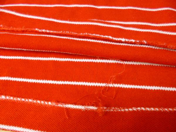 USED品で、若干の毛羽立ちや裾にステッチのほつれがあります。(画像でご確認下さい。)主観では気にならない程度です。その他特に目立つ汚れやダメージ等はありません。特に問題なく着用していただけると思います。