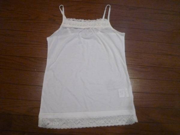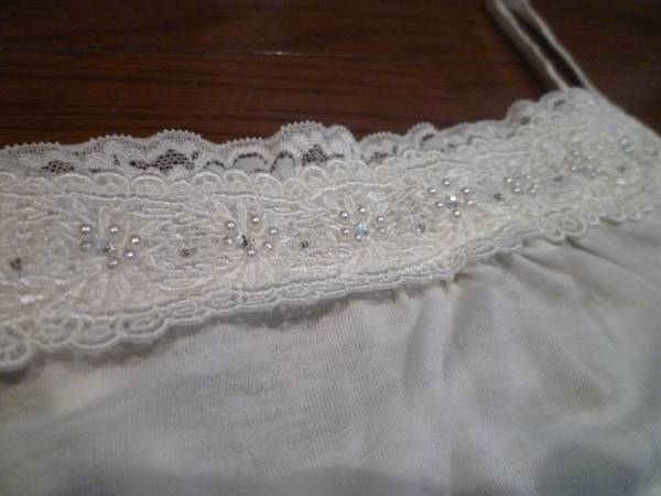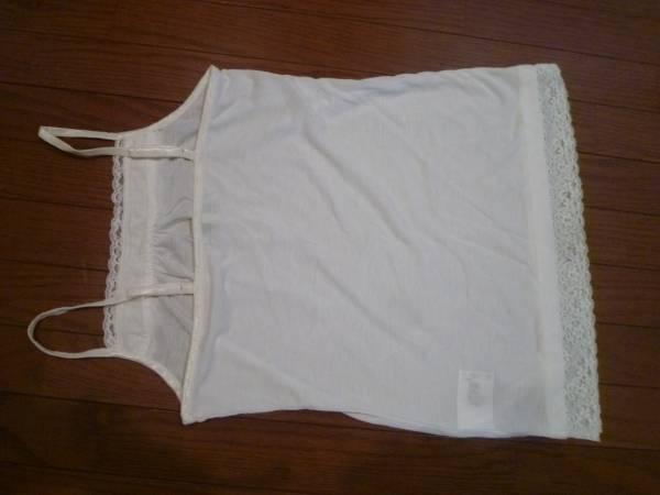 SHOO-LA-RIEのおしゃれなキャミソールです。胸にレース&ビジューがあります。裾もレースです。裾両脇にスリットがあります。肩ひもは調節可能です。