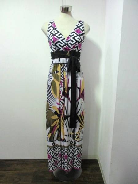 オリアン OLIaN リボンベルト付マルチ総柄ワンピ/マキシ/ドレス
