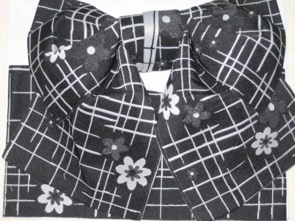 新品即決! yukata用、地紋柄結び帯3-29くろ
