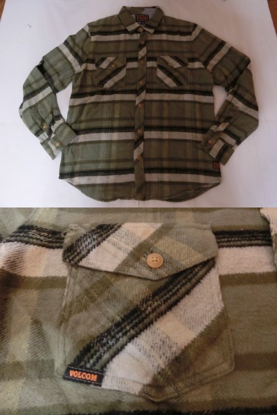 USA購入 人気サーフ&ボーダー系アメカジブランド ボルコム【VOLCOM JEANS】チェック柄ネルシャツUS Sサイズ グリーン系