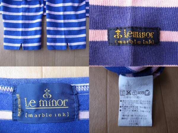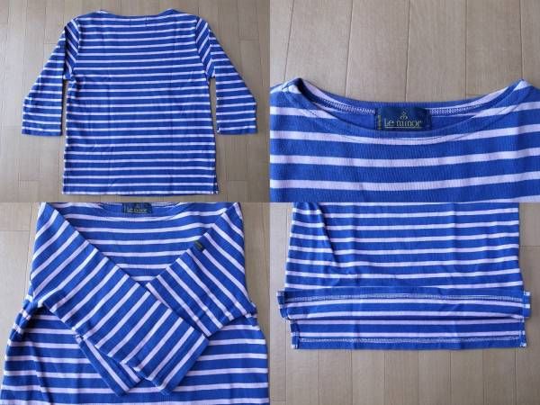 フランス製 Le minor ボーダー ハーフスリーブ バスクシャツ レディース 02 M ルミノア 七分袖 カットソー マリン ロンT Tシャツ 長袖 半袖
