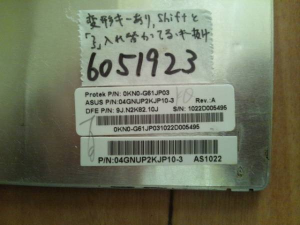 その他: 変形しているキーがあります。シフトキーと「{」キーのキートップが入れ替わっています。キートップが無いキーがあります。