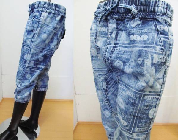 AP81)VICTORIOUSドル柄カプリデニムジョガーパンツ(JC385)/L/XL