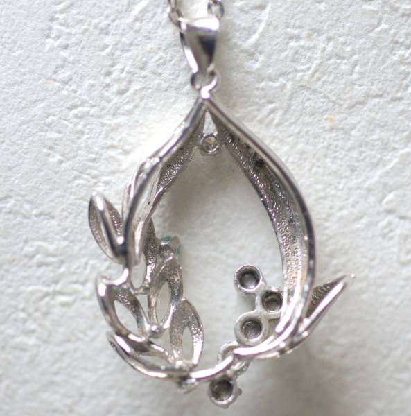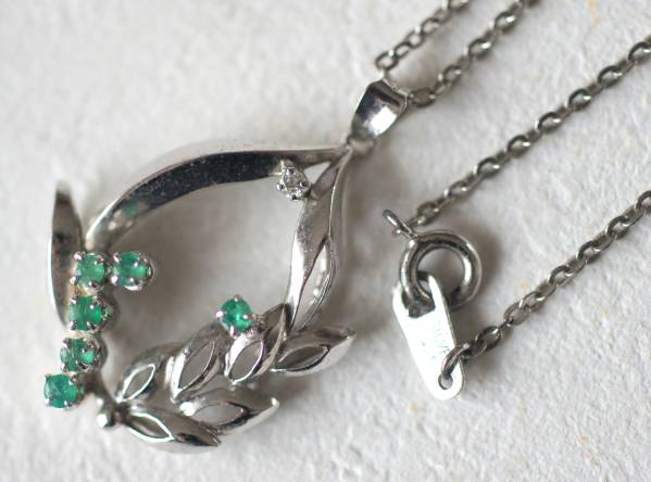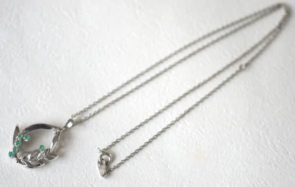 シルバー925製 アンティーク レトロ エメラルド付きネックレス