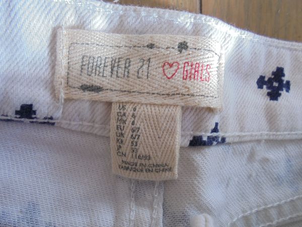 フォーエバー21★白のデニム生地ショートパンツ、紺柄★6歳110