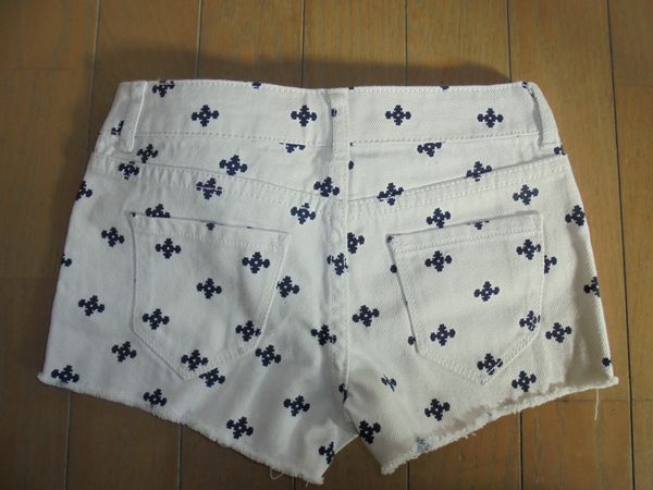 商品説明 フォーエバー21★白デニム生地ショートパンツ、紺柄★6歳110