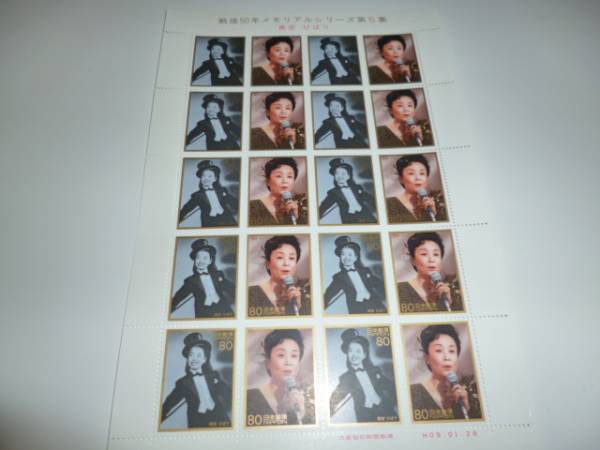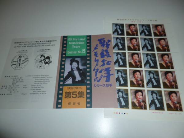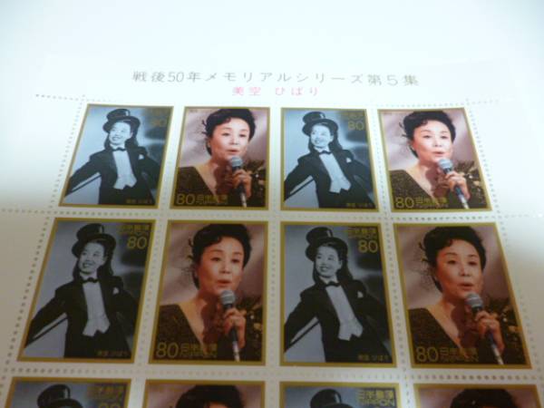 「戦後50年メモリアルシリーズ第5集 美空ひばり」80円切手分20枚(未使用)+チラシのセットになります。