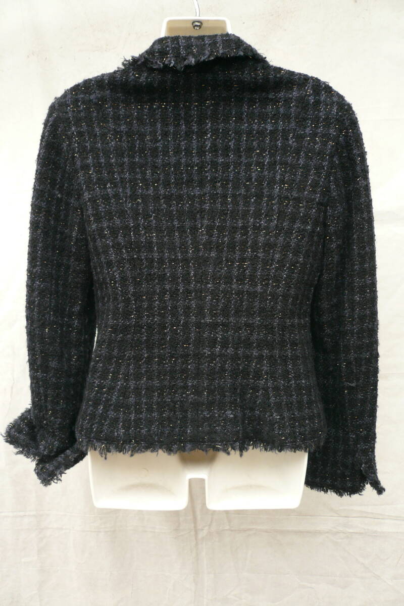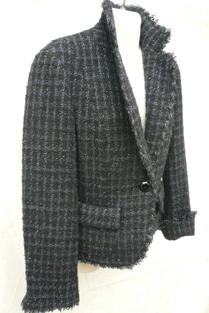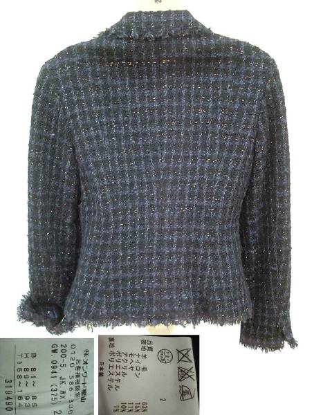 色/紺(黒に近い)金糸織り込まれてます。シャネルスーツぽい立体的な豪華な生地です。 サイズは、S~M位です。大きめボタンが可愛いです。 少しボタンの縫い込みが甘いので補強したほうがいいと思います。 状態は、数回程度の使用と思います。毛玉が擦れる部分に少し出来ています。 着丈、55 ゆき丈(首の後ろから袖)、80 肩幅、38 袖丈、58 バスト40×2、身幅40×2 商品の使用状態ですが、詳細情報に新品★と記載している場合も、実際は、試着か1回程度 の使用場合があるので、説明分を参考に!。 また、タグや補修用の布が入った紙袋が、無い場合も有ります。 画像に、写っている物が全てです。 取り扱いブランド商品は全て本物です。 注意!! 注意書きは、すべてに添付記載していますのでご了承下さい。 ジーンズやロングのパンツ等中古は裾を、お直している場合が有りますので詳しくは質問してください。 返品は基本的にお断りしています。(色、イメージやサイズ違いの返品はお受けできません。) ただし、事前に連絡頂ける場合や、見落としや大きなダメージ、偽物等の場合は返品可能です。 返品の場合は、落札価格のみの返金となりますので、送料は負担下さい。 商品の色について、、自然光で撮影の場合は、白っぽく写ります。(特に黒い商品) 実際の色は、事前に質問等で確認下さい。 商品到着後ご意見(アドバイス・クレーム・コメント)その他等ありましたらメールにて連絡願います。 |