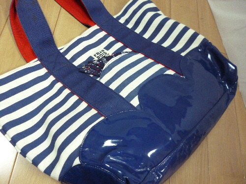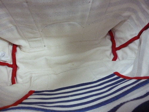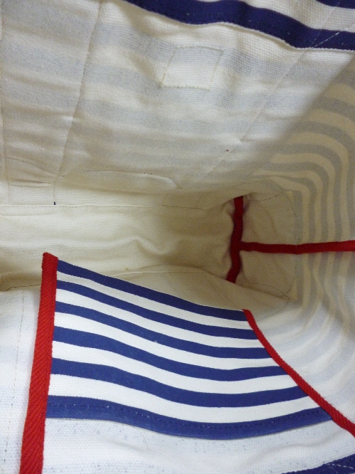内側にもにストライプ生地を使用して、パイピング始末をしたデザインです。