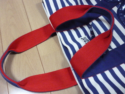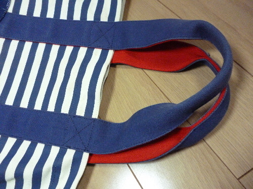 持ち手の内側には配色の杉綾テープを使用した鮮やかなカラーがポイントになっています。