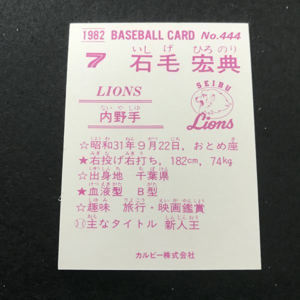 1982年 カルビー プロ野球カード 82年 444番 西武 石毛   【管理NO:3-37】