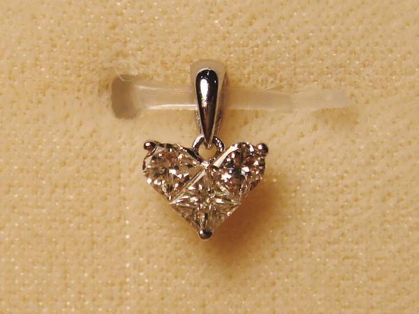 PE545:K18WG ダイヤ (プリンセスカット) ハート型 ペンダント