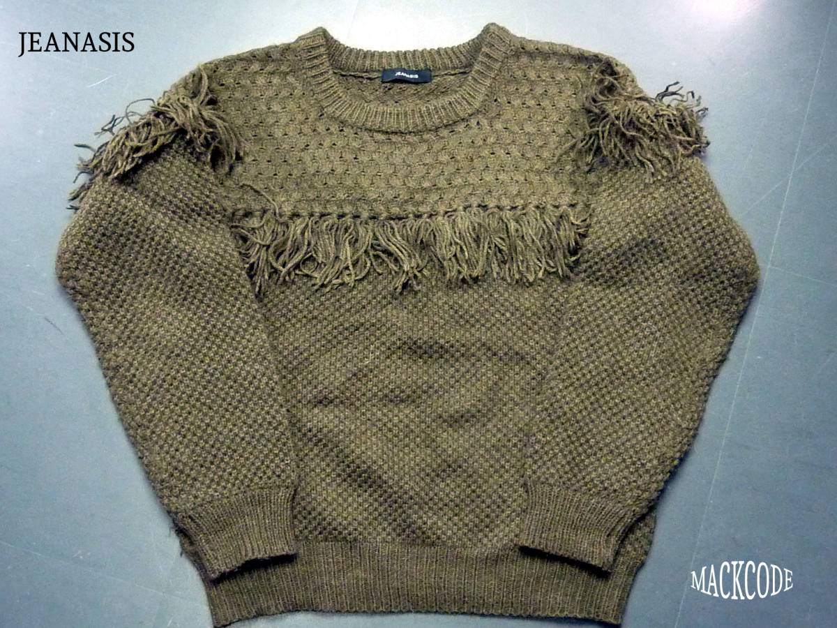 【y4501】送料270円~◆JEANASISフリンジつき柄あみニットセーター(フリーサイズ)◆アルパカ入り