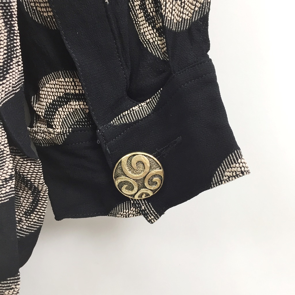| ▼商品特徴 人気の金ボタン シースルー 長袖シャツ が入荷しました! ◆BRAND NAME : ブランド不明 ◆カラー : ブラックベース ◆サイズ : 9 ◆素 材 : レーヨン70% アセテート30% ◆状 態 : USED ・目立った汚れやキズはありません。 【実寸(平置き)】 肩幅 : - 身幅 : 約47cm 着丈 : 約71cm 裄丈 : 約74cm 着用出来ない様な事がありましたら返金致しますのでご安心ください。 ◆その他出品商品はこの先でご確認いただけます◆ どんどん商品が入荷致しますので是非フォローお願い致します! ◆メンズ商品はこちら◆ ↓↓こちらで他にも出品中。Crew・actショップ↓↓