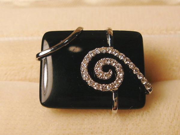 オニキスの上に手作りデザインのダイヤラインが配置されてシックです。