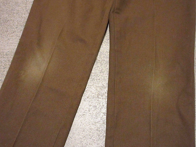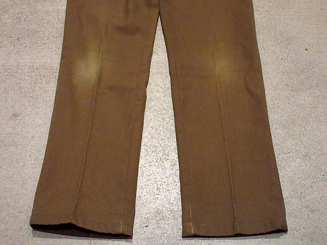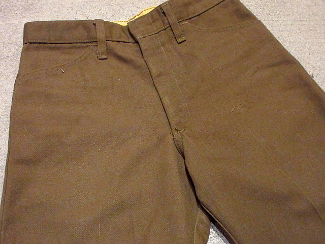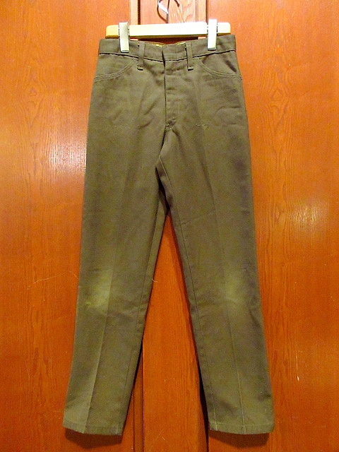 静岡県富士市にあるCOZY VINTAGEです。 海外から直接仕入れた古着、雑貨などを扱っています。 ホームページもございますので、そちらもチェックしてみてください。 https://www.used-cozy.com こちらの商品は佐川急便元払い60サイズです。 ◆サイズ◆ ウエスト・・・約64cm わたり幅・・・約24cm 裾幅・・・約16cm 股上・・・約27cm 股下・・・約69cm 着丈・・・約91m (計測箇所によって多少異なりますのでだいたいの目安としてお考えください。) ◆状態◆ 擦れがあり、もも周りに毛玉が出来ています。 ヒップ周りや膝辺りなど、擦れて色が薄くなっています。 右膝辺りに数mmのダメージが1ヵ所あります。 右バックポケット内側のステッチに約8cmの縫い直された跡があります。 ダメージ、汚れが気になる方、神経質の方はご遠慮下さい。 ◆商品詳細◆ 素材はコットンとポリエステルの混紡かと思います。 色は茶色です。 フロントはジッパーフライで、TALONが付いています。 4つポケットです。 シルエットはテーパードのスリムです。 お好きな方は是非! 210216s6-k-pnt-ot-w25 ◆ビンテージ古着、レトロな雑貨などの卸もお気軽にご相談ください。 ◆info@used-cozy.comまでお気軽にメールくださいね!! |