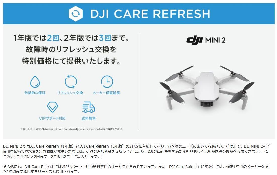 DJI Care Refresh (DJI MINI 2) 【DJI Care Refresh アクティベート方法】 STEP .1 DJI CARE REFRESH アクティベートページにアクセスします。 https://support.dji.com/care/active STEP .2 アクティベーションコードを入力後、製品S/Nおよび個人情報を入力します。 STEP .3 アクティベーション完了後、DJI CARE REFRESHサービス規約が送信されます。 【DJI Care Refresh ご利用可能な製品の条件】 ご加入には、紐づけする製品が以下のいずれかの条件を満たしている必要があります。 1.新品かつアクティベーションが行われていないDJI製品 2.ドローン・ドローンジンバルについてはアクティベーションを行ってから96時間以上経過していないDJI製品 3.OSMOシリーズ/RONINシリーズについてはアクティベーションを行ってから30日以上経過していないDJI製品 DJI アフターサービスセンターで修理した製品 (修理完了後、DJI Care Refresh購入に関する通知を受け取ってから72時間) |