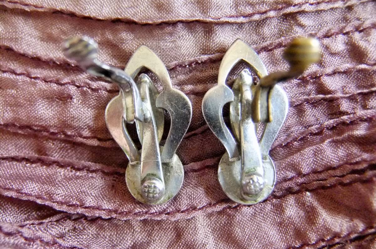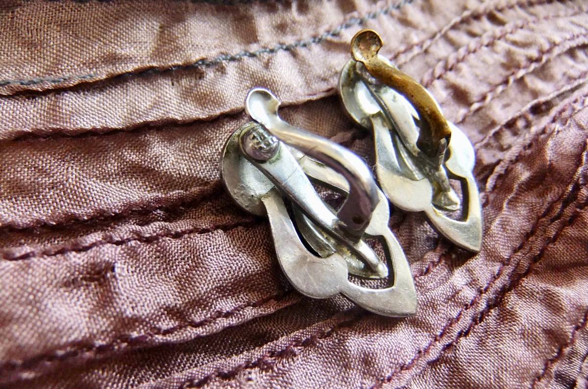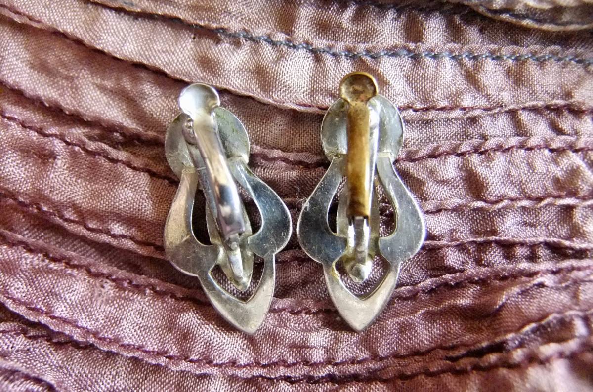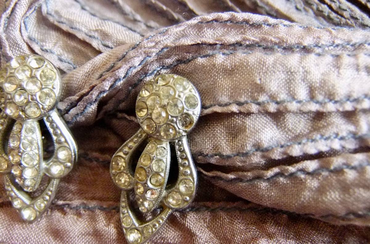ヴィンテージ品、クリアカラーストーン、アール・デコ調イヤリング。