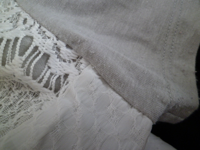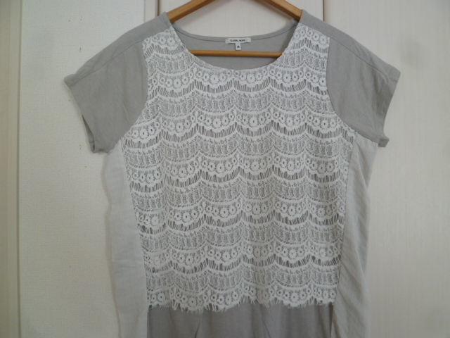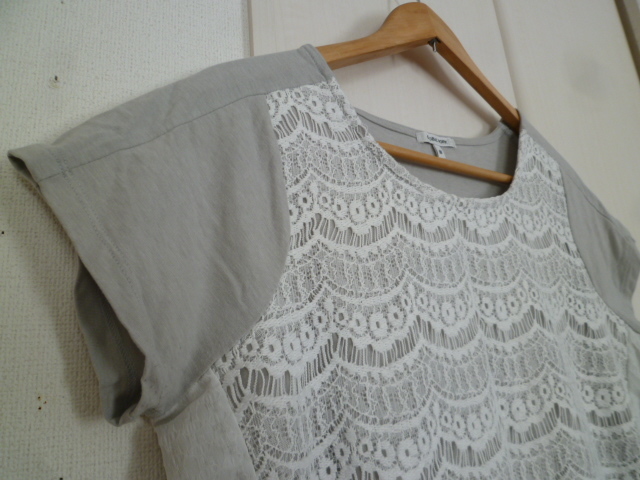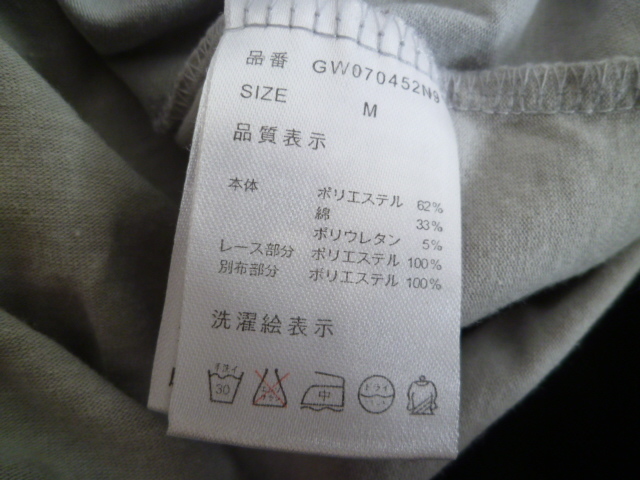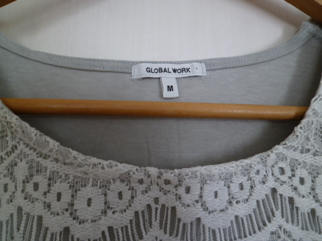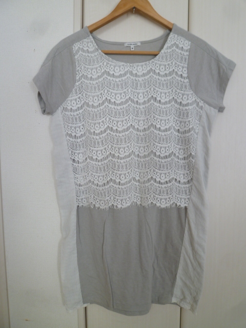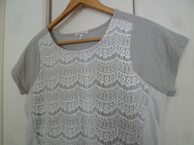 GLOBAL WORK/グローバルワーク△ライトグレー前身レース重ね着風サイド異素材ドッキングTシャツワンピースM/半袖レイヤード風△217