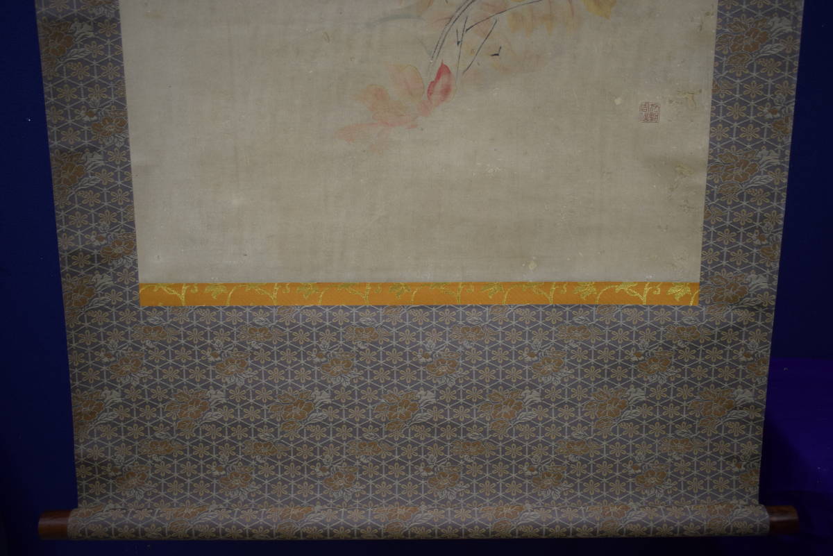 【真作】//狩野周信/紅葉花鳥図/桐題箱二重箱付/布袋屋掛軸HH-968