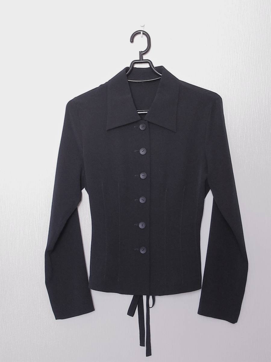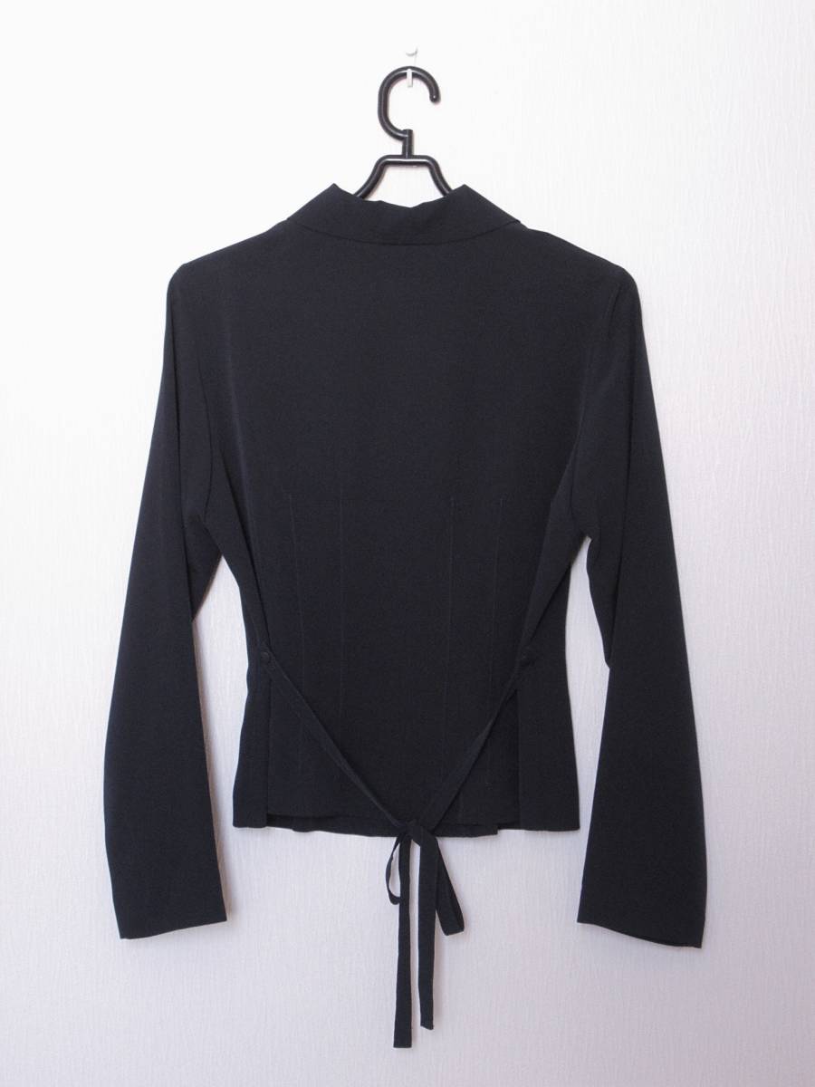 バックのリボンが可愛いです。取り外すこともできます。シワになりにくい、きちんと感のある、上質な生地です。裏地が無いので夏でも涼しくジャケットの替わりに羽織れます。オンにもオフにも活躍しそうです。ご検討宜しくお願い致します。☆支払いから発送までの日数は3~7日としております。お急ぎの対応はしておりませんのでご了承下さい。