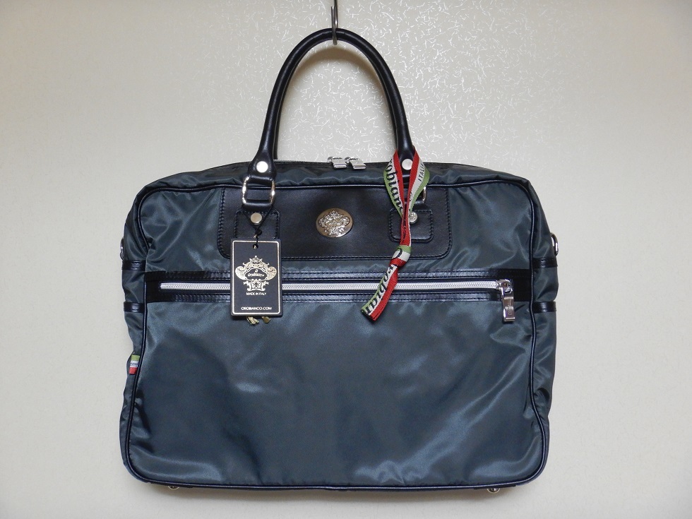 Orobianco オロビアンコ ビジネスバッグ ダークグレー ナイロン 2WAY ショルダー付き 仕事 かばん イタリア製 新品 未使用