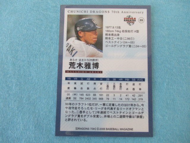 ★BBM 2006★〔89 荒木雅博〕中日ドラゴンズ 70周年 記念カード トレカ♪