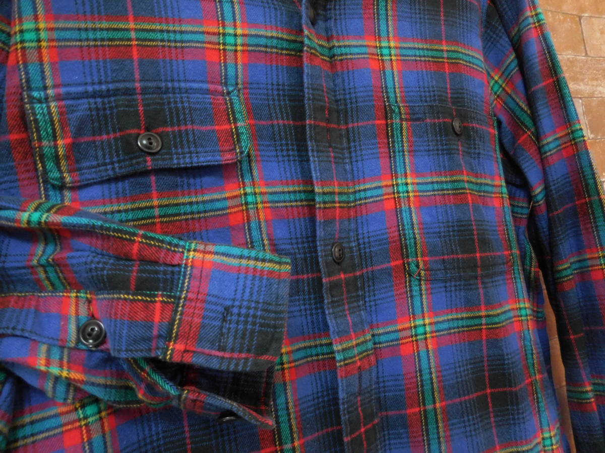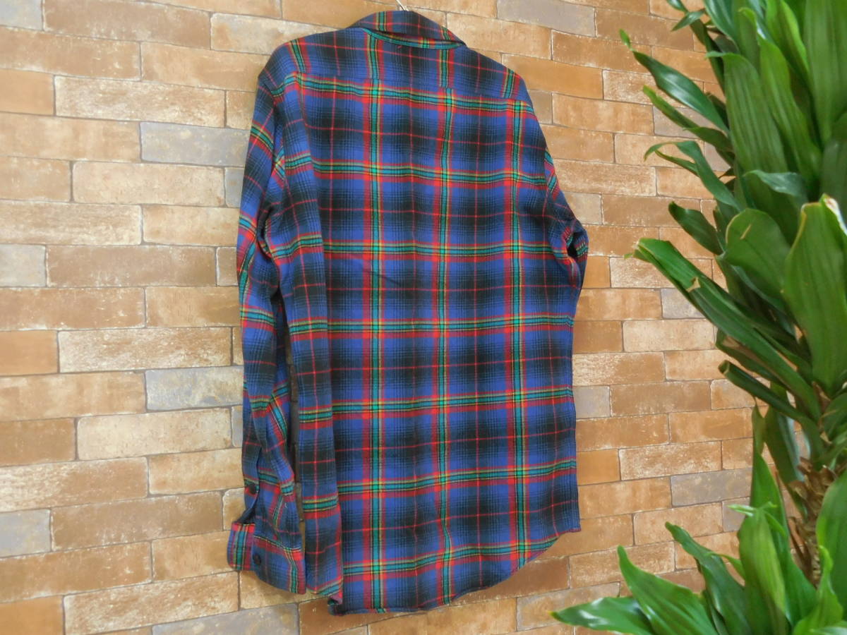 ・状態 比較的着用感は少なく、美品の部類に入ると思います。 あくまでも古着にご理解の上、入札をお願い致します。 ・サイズ (S) 平置き実寸 着丈約78㎝ 身幅約57㎝ 肩幅約46㎝ 袖丈約62.5㎝ ※素人採寸ですので、多少の誤差は予めご理解の程、宜しくお願い致します。 ・素材 不明 おそらく綿だと思います。 ・カラー 青系チェック |