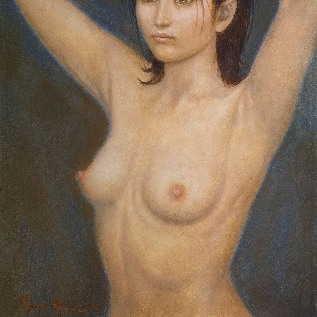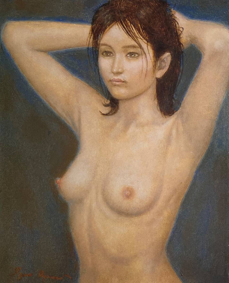 小川以久男、【さやか】、希少な画集より、新品高級額、マット額装付、送料込み