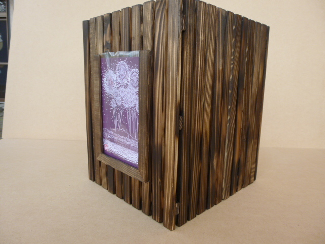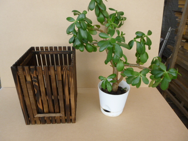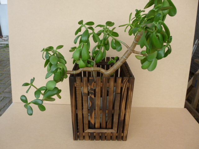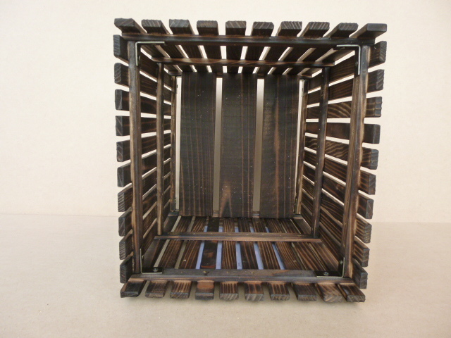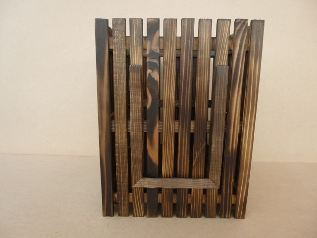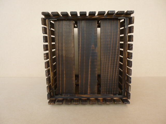 手造り焼き杉縦格子プランターカバー(ホルダー付き)です。