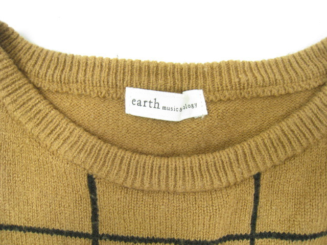 ■ブランド・商品名:earth music&ecology アースミュージック&エコロジー クロス チェック柄 ニット ブラウン×ブラック サイズフリー F