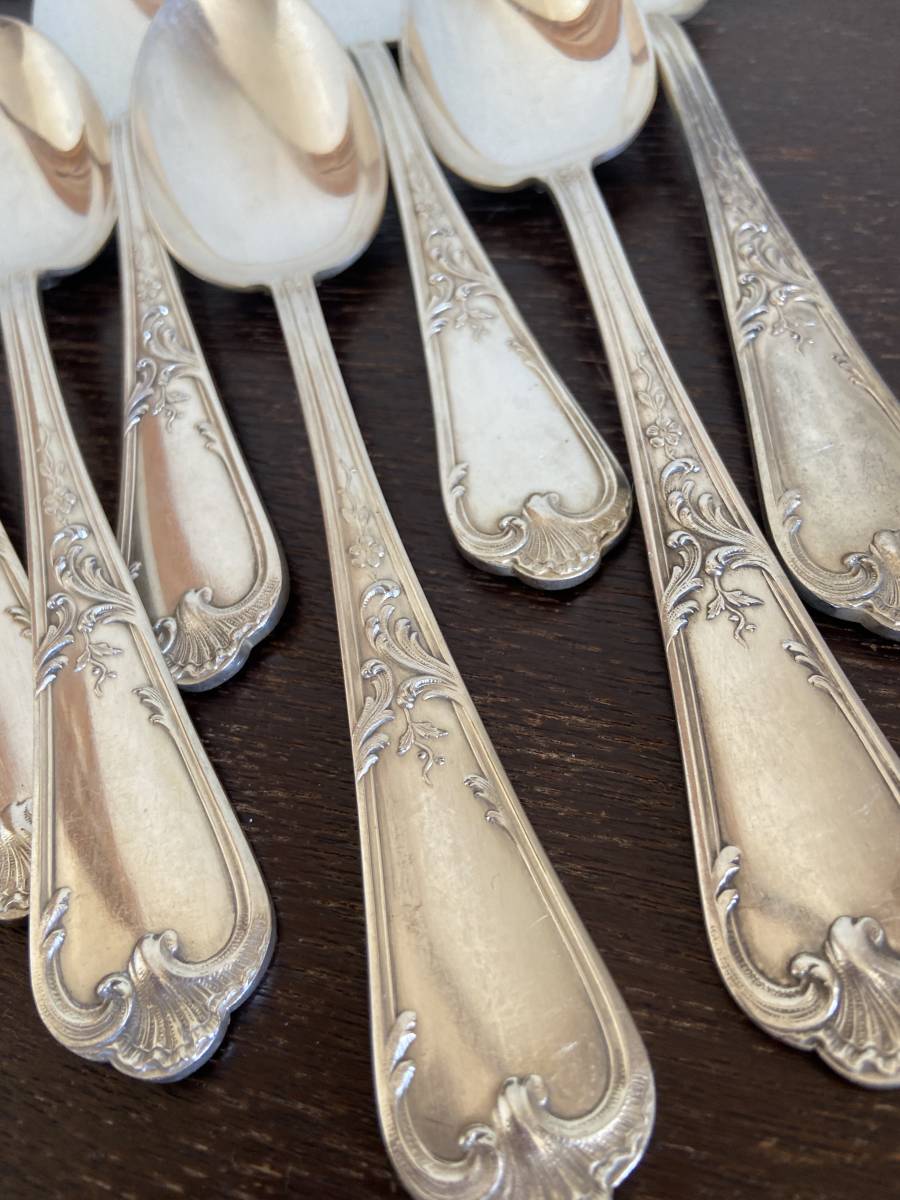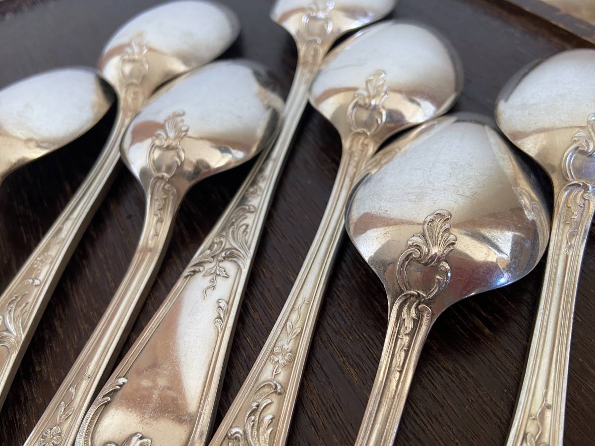 | 説明の最後にご注意点を記載しております。 ご一読お願いいたします。 フランス・エルキューイ社の銀メッキ製カトラリーです。 伝統的なアカンサスの模様が施されています。 アカンサスは古代ギリシャから用いられている装飾模様です。 テーブルスプーン 21.5cm 7本 古いものですので、全体的に細かな傷やわずかな汚れが見られます。 | |||