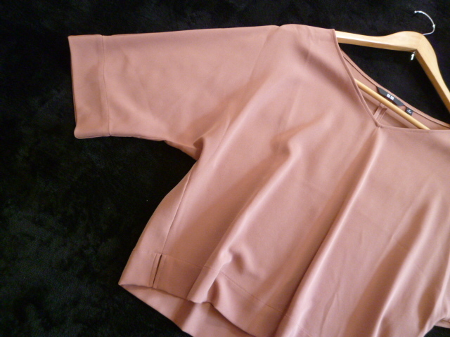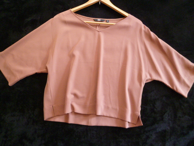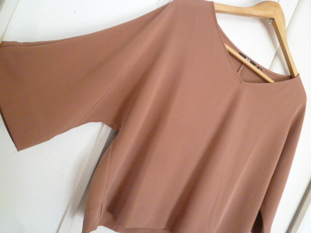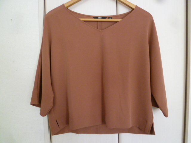 UNIQLO/ユニクロ△茶系VネックとろみドルマンブラウスカットソーM/ブラウン系五分袖トップスプルオーバー△T48