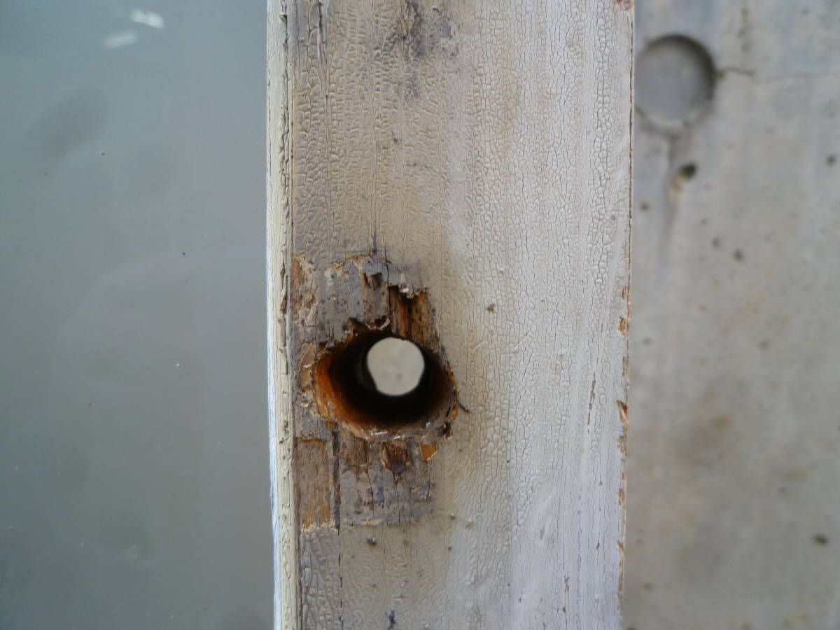 こちら奥京都の山小屋で使われていた木製の古い窓です。擦りガラスがついています。50年~100年前のアイテムです。全体に植物の跡があったり、よごれがあったりと、状態は悪いです。 高118cm 横93.5cm 奥3cmです。チェックしておりますがフレームにも経年使用による劣化、割れなどがある場合がございます。セカンドハンド品につき、全体に傷、汚れ、などございます。検品時チェックしておりますが、見落としや、保管時にダメージなどが生じる場合がございます。古い建具は使用に際してメンテナンスや修繕が必要になることも多く、その場合はお客様自身でお願いいたします。以上、ご了承の上でご入札お願いいたします。