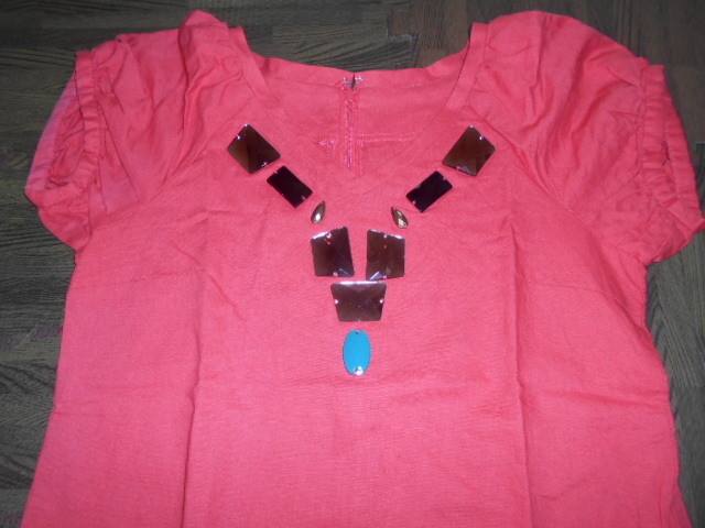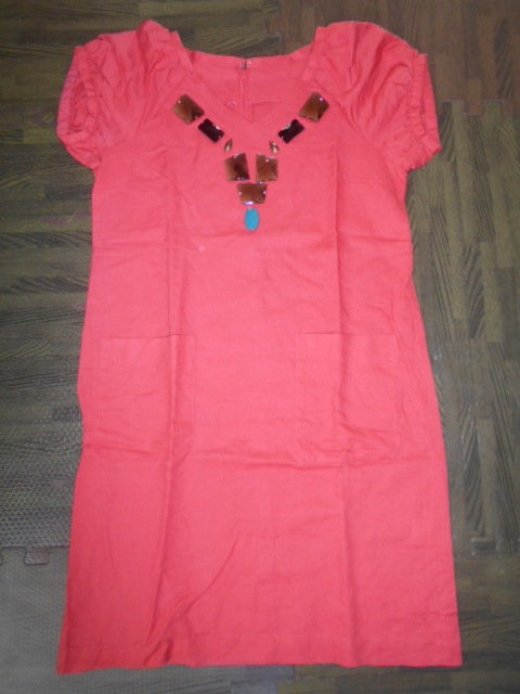 ★コーラルオレンジのビジュー付きチュニックワンピ★Mサイズ 美品