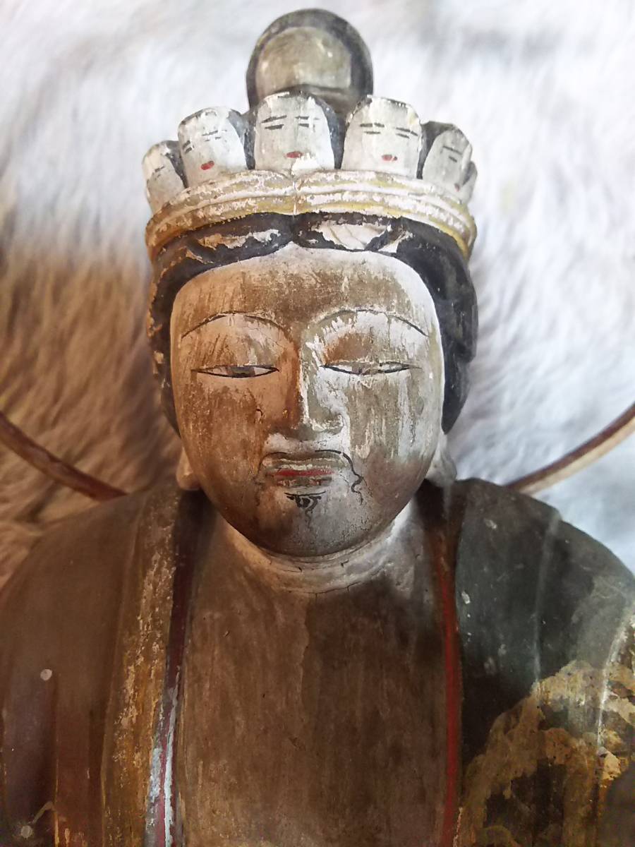 (鳥羽庵)うぶだし骨董仏教美術時代鎌倉時代~室町期11面観音菩薩座像 サイズ 横幅20センチ 高さ35センチ 奥行15センチ 時代も十分あり とても良い顔立ちしてます。 材質木彫 光背竹製です。 商品状態もとてもよく極上品です。 発送は、ゆうパックにて発送いたします。 詳しくは、写真参照でお願いします。下にフォトアップ写真ついてますので参照お願いし ます。骨董品につきノンクレームノンリターンでお願いします。 落札後48時間いないで連絡できる方4日以内で入金できる方入札待ってます。