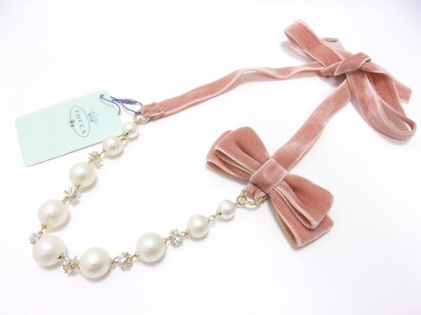 ◆TOCCA BAMBINI(トッカ バンビーニ) ベルベットリボンネックレス新品です。 首元を華やかに飾ってくれるお子様用ネックレスです。光沢感が上品なベルベット素材のテープと、リュクスな輝きを放つフェイクパール・フェイクビジューが大人顔なデザイン。本体がテープになっていますので、自在に長さの調整ができ、エイジレスにお使いいただけます。 定価は¥9.900です。 実寸サイズ 長さ:101.5cm ※採寸は参考程度とさせていただきます。 カラー ピンク系 素材 人造真珠、ガラス、真鍮、レーヨン、ナイロン |
