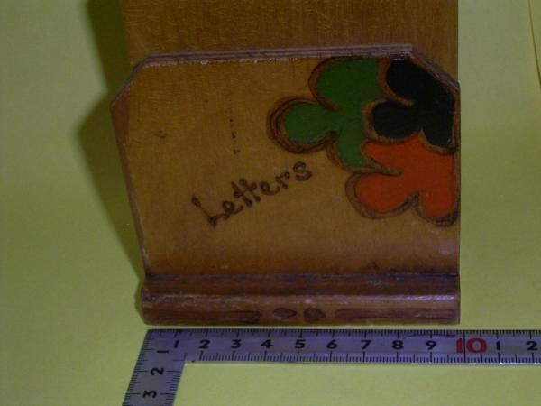 イギリスの地方のアンティークフェアーで掘り出してきました。可愛いデザインのあるレター立てです。年代は1950年から60年頃に思われます。サイズは立て、横 約100×80です。高さは約147ミリです。状態は良いですがアンティークである事を御理解の上ノークレーム、ノーリターンでお願いします。