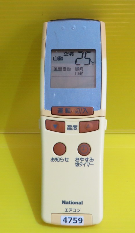 即発送! N-4759■National ナショナル エアコン用リモコン A75C2092 ■ 電池蓋なし 動作品 保証付