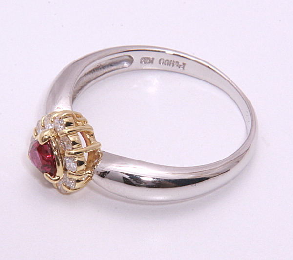 《質屋出品》Pt900/k18★ハートシェイプ天然ルビー0.24ct+ダイアモンドリング★C-4504