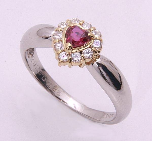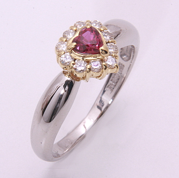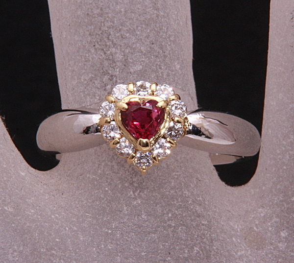 Pt900/k18★ハートシェイプ天然ルビー0.24ct+ダイアモンドリングです。