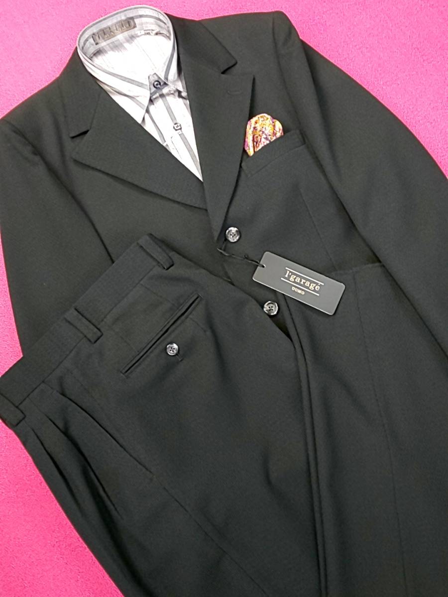 新品 SALE!! 特別価格!! 送料無料 l'garage 三ッ釦スーツ スリータック Mサイズ ゆったり パーティー 結婚式 ステージ衣装 4918-2