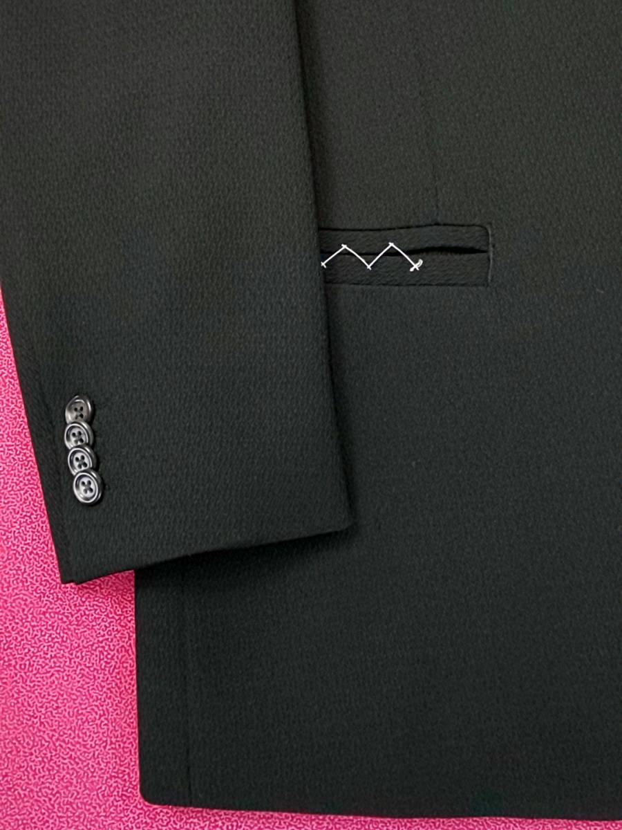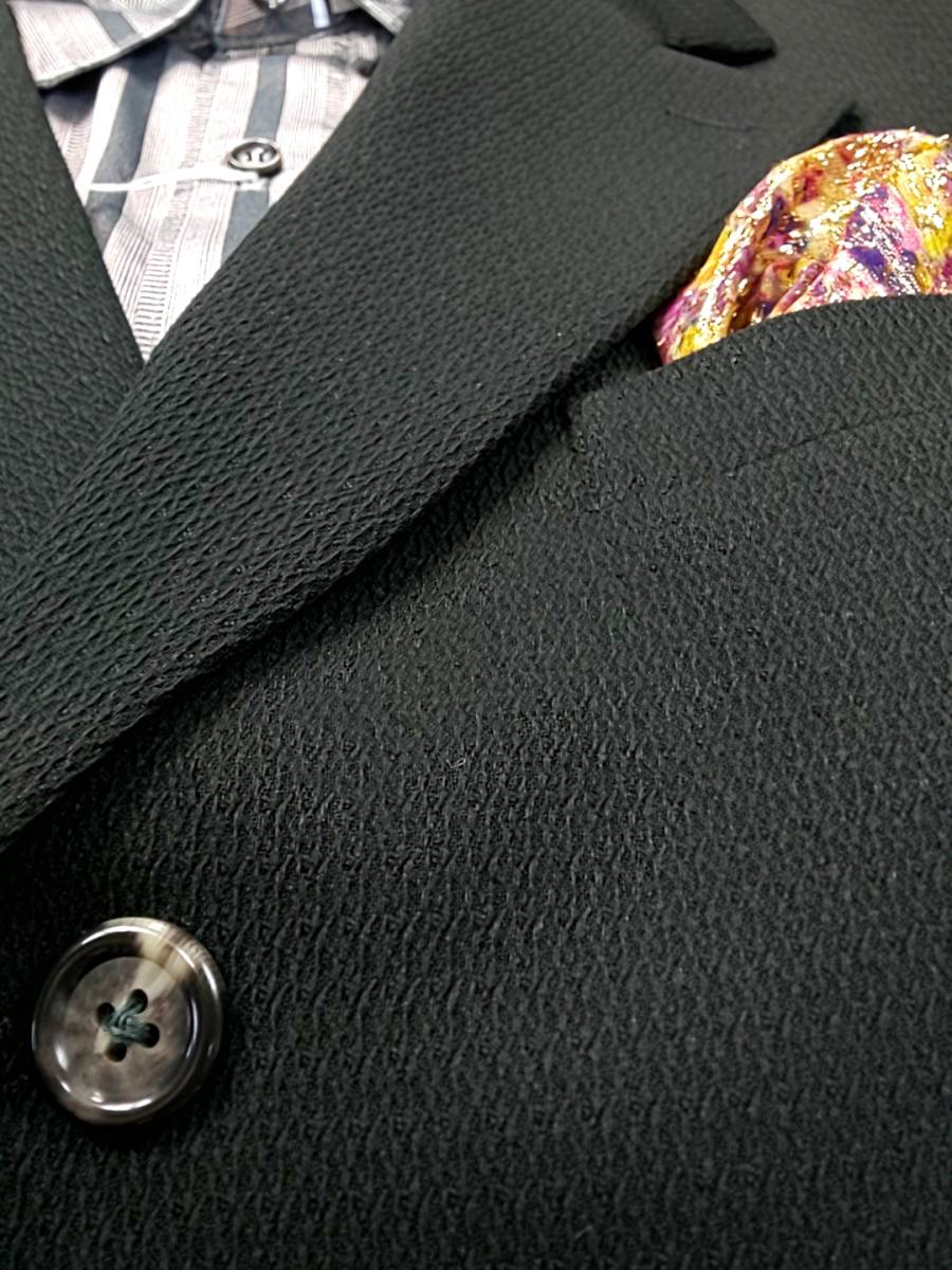 特徴      サラッとした生地で細かな幾何学模様柄ジャガード織りのオシャレな三ッ釦スーツです。
