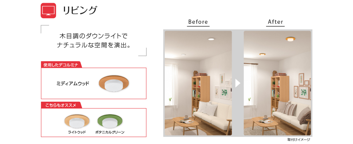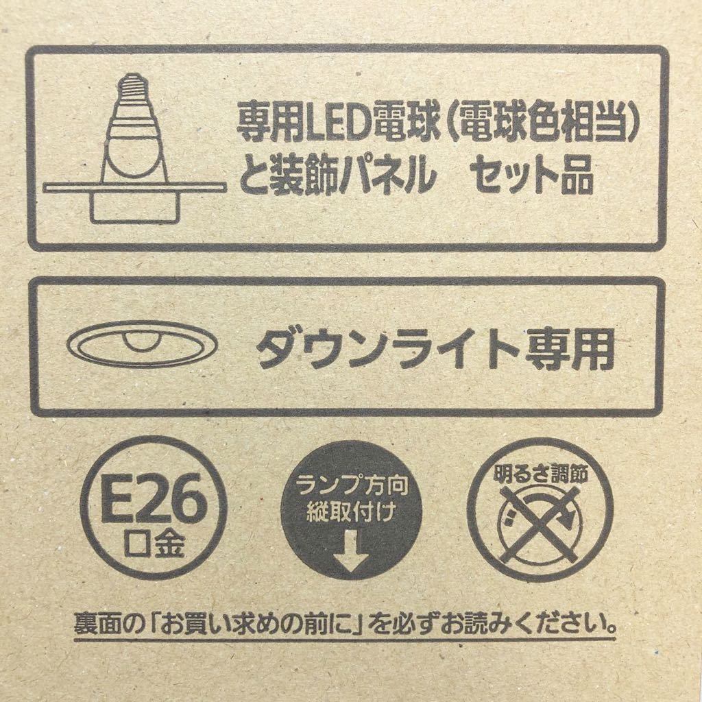 | メーカー:パナソニック Panasonic 型番:LDF8L/BU/004C JAN:4549077692085 色:ライトウッド メーカー希望小売価格: 【状態:新品、未開封】 【 特 長 】 装飾パネルは、インテリアや好みにあわせて選べる10種類! 工事不要、電球交換だけでダウンライトの外観デザインが変えられます ■工事不要、電球交換だけでダウンライトの外観デザインが変えられる 電球交換の要領でダウンライト(天井埋め込み型照明器具)に取り付けるだけで、簡単に外観デザインが変えられます。これにより、華やかな空間演出や、装飾パネルと床や家具等のインテリアにあわせたカラーコーディネートなどを提案します。取り付けは、当社独自のスプリング&ワイヤー構造により、器具の枠からソケット口までの深さが85~145mmまで、枠の内径が85~138mmまでのダウンライト器具に対応します。 ※1 必ず以下のダウンライトでご使用下さい。 ・ランプの口金がE26サイズ(26mm) ・ランプ方向が縦取付け ・ダウンライトの枠外径170mm以下 ダウンライトの枠内径85mm~138mm ・ソケット口から枠まで85mm~145mm また、次のダウンライト器具では使用できません。(破損・発熱・短寿命の原因) ・調光(明るさが調節できる)機能のついた器具(段調光器具も含む)(100%点灯でも使用不可) ・センサ付器具・水銀灯などのHIDランプ器具・誘導灯等・非常用照明器具・断熱材施工器具(SB,SGI.SG形表示器具) ・防水器具・木枠・太枠など装飾素材、特殊形状の枠がついた器具・前面がパネル付き器具・傾斜天井についている器具 ・レフ電球専用などのソケット付近の器具内径が狭い器具 【 仕 様 】 光源色電球色 ランプの種類LED 仕様1装飾パネルサイズ:φ180×38mm、電球サイズ:φ55×100mm(取付長:100~170mm)、口金:E26 仕様2消費電力:7.8W 仕様3明るさ:電球40W形相当(参考値) その他、仕様等の詳細はメーカーサイトをご覧下さい。 【メーカーサイト】 | |||