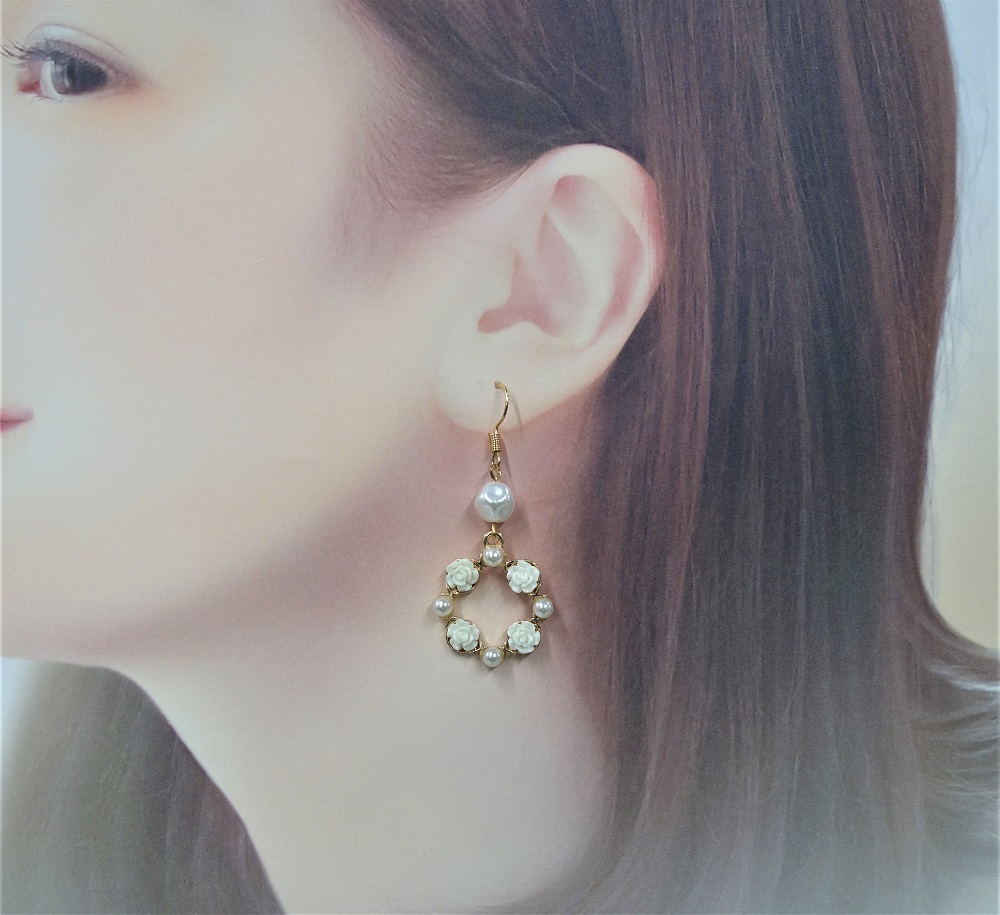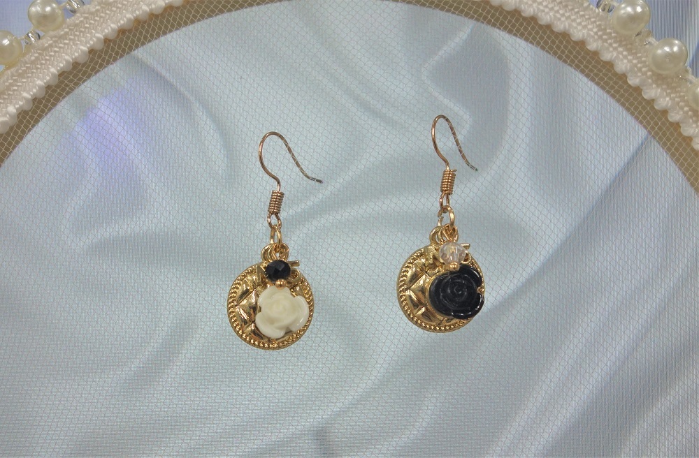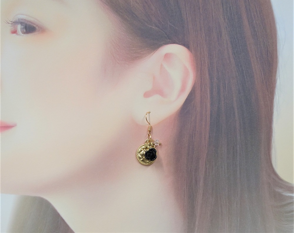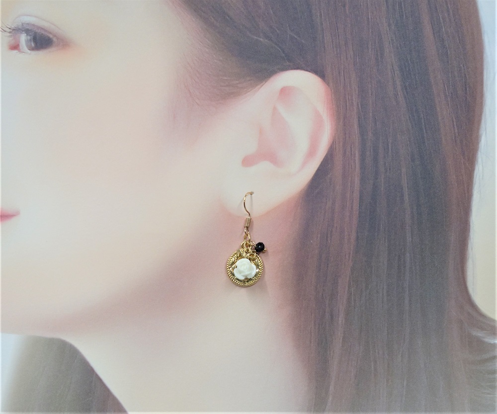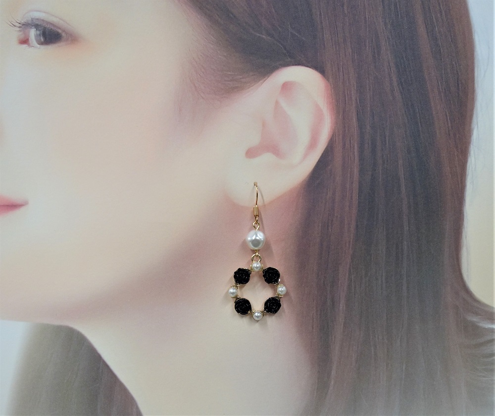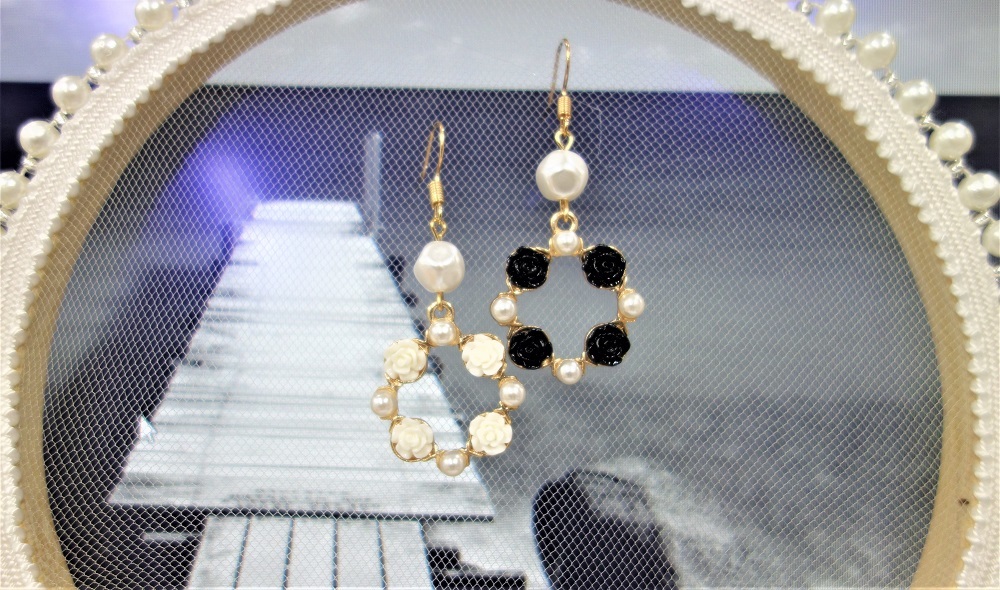 【白黒調花のピアス/アクリルピアス/2セット800円】送料無料/ハンドメイドアクセサリー