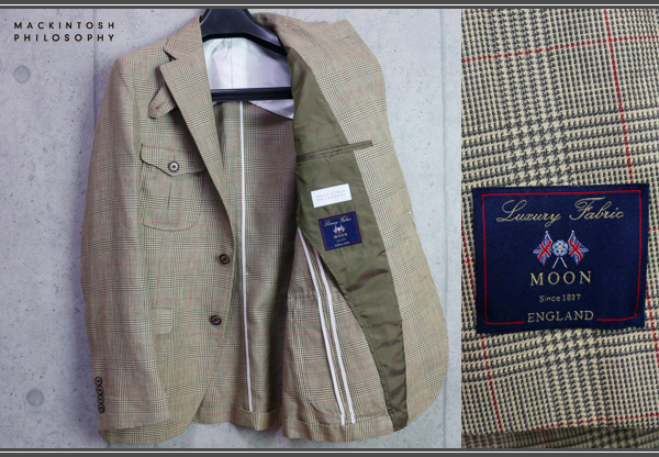 新品マッキントッシュ フィロソフィー春夏『名門 MOON社生地』 ウール リネン グレンチェック ジャケット36R/S7.1万MACKINTOSH PHILOSOPHY