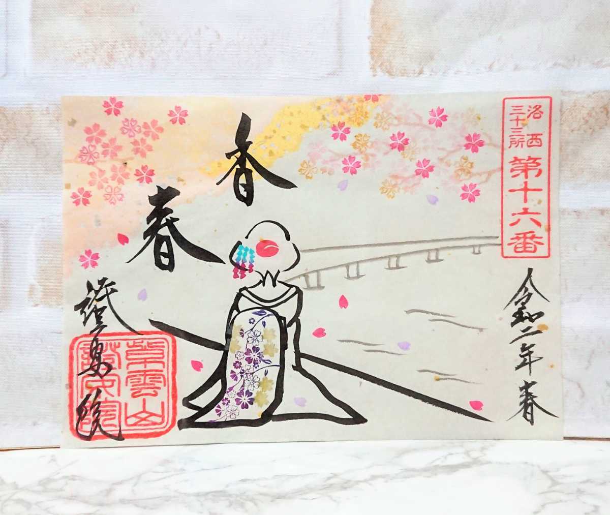 季節にごとに変わる絵などが人気の一つ。うしろ姿の舞妓さんや兎、「無上尊」のご朱印ではお地蔵さんなどバリエーション豊かなラストがひとつひとつ心込めて書かれています。