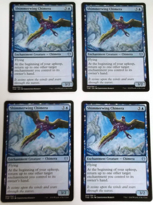 MTG英語/4枚セット/Shimmerwing Chimera(瞬き翼のキマイラ)/テーロス還魂記/アンコモンです。中古品扱いですので、神経質な方、美品をお求めの方は入札をご遠慮ください。